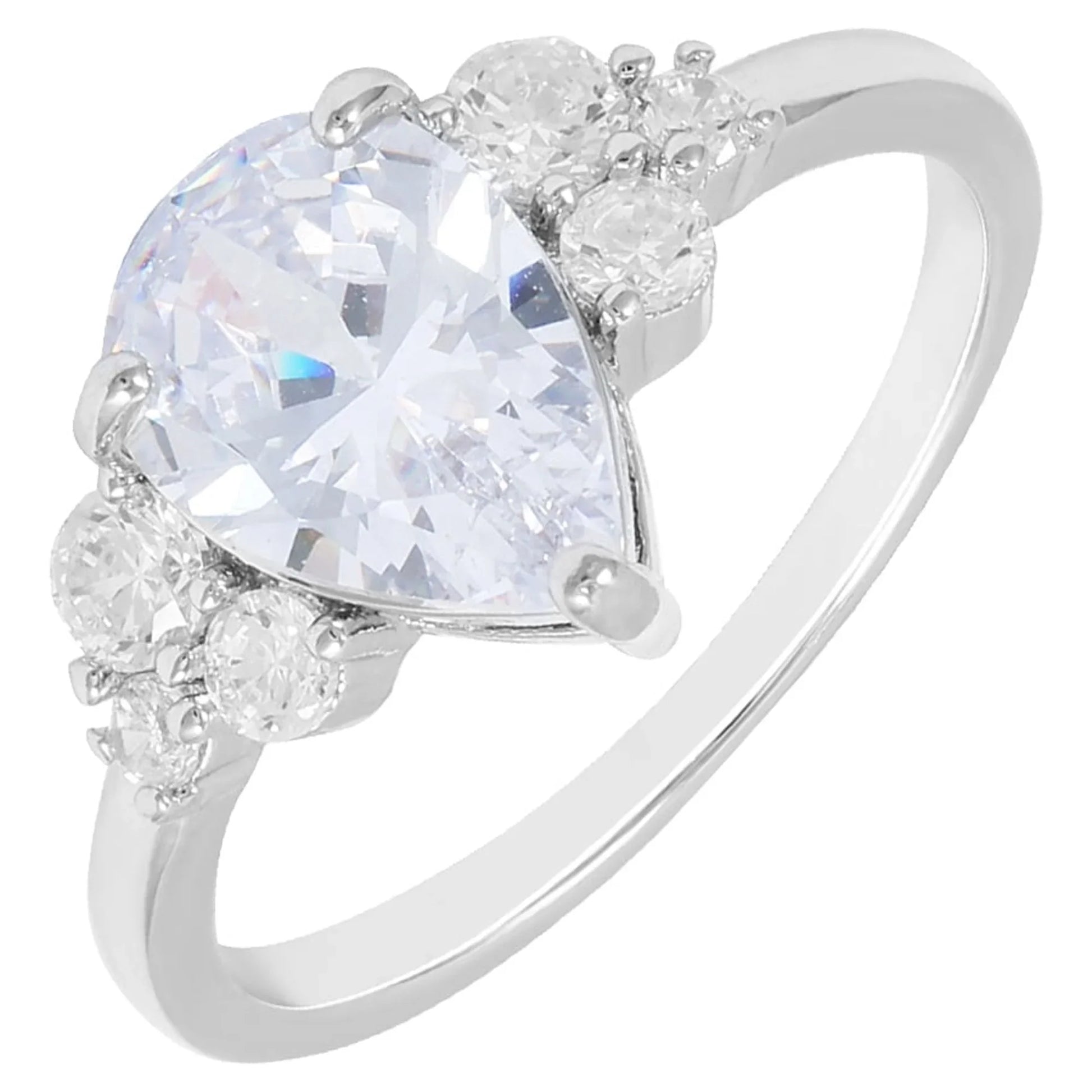 Believe in Brilliance Women's Fine Silver Plate AAA CZ Pear Engagement Size 7 Ring.