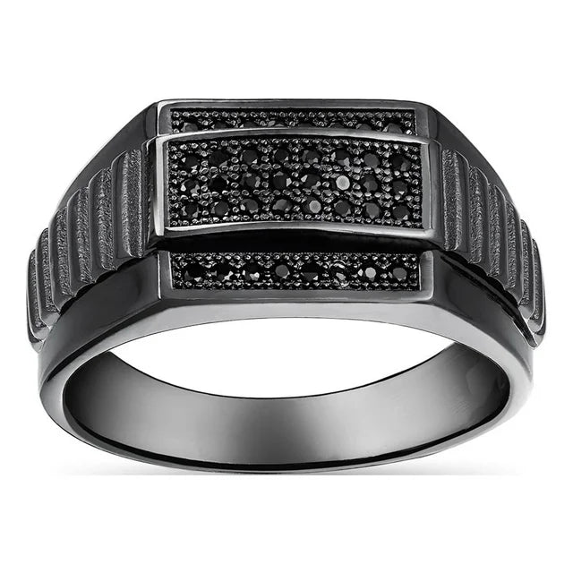 - Men's Championship Style Ring - Impress the special man in your life with this elegant men's ring featuring striking black CZ accents.