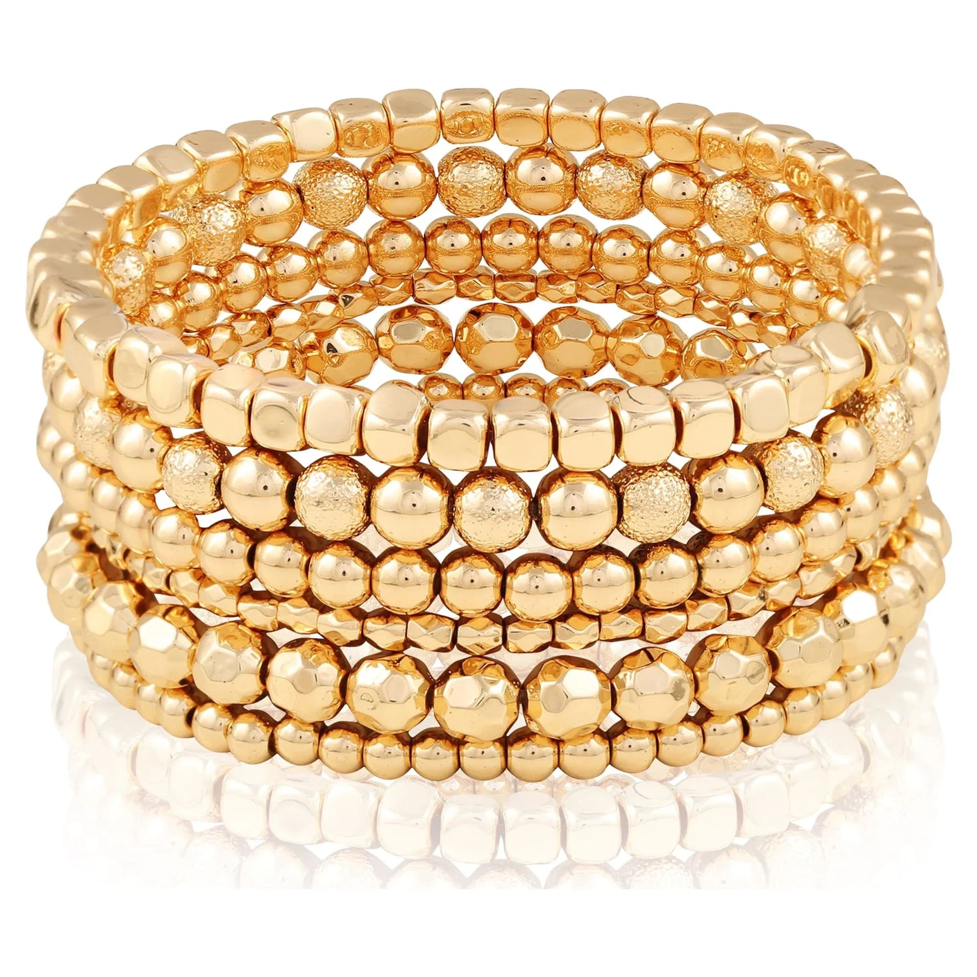 Time and Tru Women's Gold Tone Beaded Stretch Bracelet Set, 6-Piece